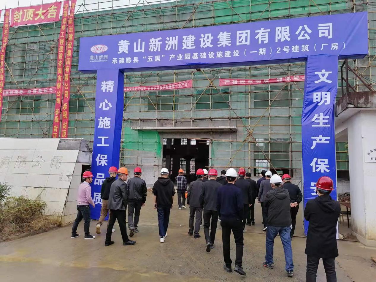 2021年11月5日上午,黟縣縣委書記葉建明一行人蒞臨公司承建的黟縣“五黑”產(chǎn)業(yè)園基礎(chǔ)設(shè)施建設(shè)(一期)2號(hào)建筑(廠房)施工現(xiàn)場(chǎng)進(jìn)行檢查調(diào)研。